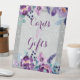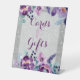 Purple Watercolor Floral & Silver Glitter Wedding Pedestal Sign