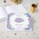 This baby shower guest book features pretty purple watercolor flowers. Personalise it with a name. This guest book is part of a collection which includes a full range of matching items. Please visit the collection pages in our store to see the full range of products that you can personalise for your baby shower needs.