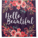 Trendy watercolor flowers in pink with a purple background and white hand lettered script saying "Hello Beautiful".