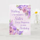 Birthday card for sister with purple watercolor flowers and thoughtful verse.