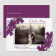 A lovely way to announce your marriage. This stylish elopement announcement features beautiful violet purple watercolor flowers with faux gold glitter spatter dots flanking your favourite wedding photo. The text reads "We Did A Thing! " but can be changed to your special message. The photo features a filter which can be changed or removed in the design tool. Add your special message to family and friends on the back.