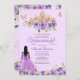 Quinceanera invitation in lilac and lavender shades of purple featuring gold butterflies and a beautiful tiara and a girl in a flowing ball gown. Visit shop for more variations in skin tone and colour combinations