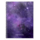Stylish, trendy notebook featuring a purple watercolor space galaxy background. Personalize the space-themed notebook by adding your name or other custom text.