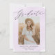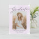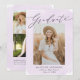 Elegant four photo graduation announcement featuring "Graduate" displayed in a black modern calligraphy script with a light purple watercolor wash background. Personalise the front of the purple graduation announcement by adding your favourite photo and the graduate's name, school, and graduation year. The graduation announcement card reverses to display an additional 3 photos with space for custom text such as the graduate's future plans, achievements, graduation party details, etc. The design is perfect for both high school and college graduates.