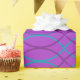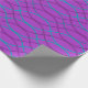 This wrapping paper has a Boho design of purple and turquoise waves on a field of light purple.