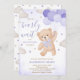 Purple We Can Bearly Wait Baby Shower Invitation