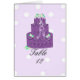 A pretty purple wedding cake, elegantly decorated accents the 'table number". A soft mauve polka dot background. Add bride and grooms name and wedding date inside as desired.