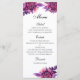 Purple wedding dinner menu. Floral menu party