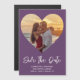 Create Your Own Simple, White and Purple, Heart Cutout For Photo, Wedding Save the Date. Add Your Own Photo, Add Your Names, Add Your Wedding Date, Add Your Wedding Location and Make It Your Own.