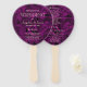 Simple, elegant, typography, marbled purple wedding program hand fans with gold modern script.