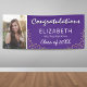 Celebrate graduation in style with our Personalized Graduation Party Banner! The banner boasts a customizable school colors backdrop, a dashing photo of the graduate embellished with a sparkling layer of glitter. With the word 'congratulations' scripted in a shadow script, along with the graduate's name, the school, and class year, this banner is the perfect centerpiece to any celebration. Change the background from bold purple to any color that matches your theme for a truly personalized touch!