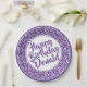 Purple/White 65th Random Number Pattern Paper Plate