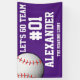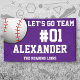 Cheer on your team with this Purple White Baseball Team Banner. Personalise with your athlete's number and name, and the name of the team. You can even change the message. Show off your team spirit this summer.