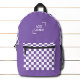 Purple White Chequerboard Check Pattern Logo Printed Backpack