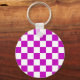 Purple White Chequered Check Pattern Key Ring