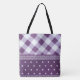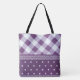 Purple White Chequered Polka Dot Floral Damask Art Tote Bag