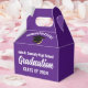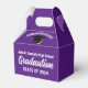 This modern purple and white custom senior graduation party favour box features your high school or college name for the class of 2025. Customise with your graduating year under the chic handwritten script and black grad cap for a great personalised graduate keepsake gift.