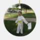 Great martial arts Christmas ornament for the fighter you know. The front features a silhouette of a karate kick in white on a purple background. Below the drawing is a custom space for a name and year. The back has a space for a custom photograph of your choice.