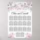 Soft barely there purple and pink flowers create a lush border at the top of this wedding seating chart. Blush pink roses, soft violet lilacs and white anemones with deep purple centres are nestled in a variety of sage green leaves and vines. Two smaller purple bouquets frame the bottom corners. Together they create a modern floral Boho chic design. This wedding sign is part of the Blushing Violet collection which contains the DIY sign templates that you can use to personalise your wedding ceremony and reception. You should see a link to it on this page. If you don't see the link or need help with a template, please contact me.