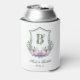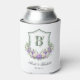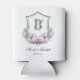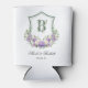 This beautiful purple and white floral crest wedding can cooler with the bride and groom's initials would be perfect for your shower, bachelorette party, rehearsal dinner, or wedding reception. It is traditional yet modern and the fonts are exquisite. The purple and white watercolor roses, peonies and lilies of the valley and wispy greenery are stunning together. These will keep everyone's drinks cool and they make a great wedding favour.
