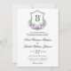 This beautiful purple and white floral crest wedding invitation with the bride and groom's initials would be perfect for your wedding. It's wording is traditional yet modern and the fonts are exquisite. The purple and white watercolor roses, peonies and lilies of the valley and wispy greenery are stunning together.