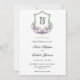 This beautiful purple and white floral crest wedding invitation with the bride and groom's initials would be perfect for your wedding. It's wording is traditional yet modern and the fonts are exquisite. The purple and white watercolor roses, peonies and lilies of the valley and wispy greenery are stunning together.