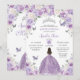 Celebrate in style with this elegant invitation card featuring a hand-drawn watercolor design. Adorned with beautiful purple lilac and white rose florals, a girl in a purple lilac dress, delicate butterflies, and silver accents, this invitation is perfect for a birthday party, sweet sixteen, quinceañera, or any special occasion.