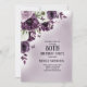 Elegant and whimsical 80th birthday party invitation for women with pretty purple and white watercolor flowers and butterflies.