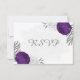 Romantic royal purple & white flowers with silver leaves botanical wedding response card with meal choice option.
