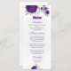 Romantic royal purple & white flowers with silver leaves botanical wedding menu card.