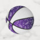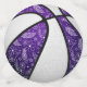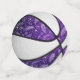 This cute basketball birthday party confetti features the image of a stylised basketball that has recolored alternating purple and white panels on the front and back of each confetti piece and a boho paislies & feathers floral doodle pattern overlying the purple panels - by katz_d_zynes