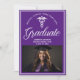 This purple custom medical school graduation announcement for a nurse or doctor features classy white typography under a medical caduceus and your college name for the class of 2025. Customise with your graduating year under the elegant calligraphy for a great personalised university graduate card.
