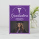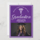 This custom purple medical school graduation party invitation for a nurse or doctor features classy white typography under a medical caduceus and your college name for the class of 2025. Customise with your graduating year under the elegant calligraphy for a great personalised university graduate card.