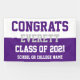 Hang this Purple & White Minimalist Graduation Party Banner to honour your graduate. Personalise with your grad's name, school, and class year. This bold school colours banner features a classic font and plenty of school spirit.