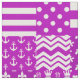 Purple and White Mixed Patterns Patchwork Design of 16 Different Design illustration of Fleur-de-lis, crowns, hearts, Polka Dots, Greek key, Moon stars, Houndstooth, Trees, Harlequin, Stripes, Check, umbrella, anchor, Chevron, blob and flower floral illustration Designs.