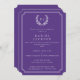 Purple/White Monogram Laurel Wreath Graduation Invitation