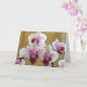 Send greetings to someone with the template text designed card featuring digitally altered photograph of colourful purple and white orchids. Fill in the template, remove the inside text leaving room for a handwritten note or use the edit design tool to select a font style, size and colour you prefer.