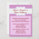 Wedding Invitation with purple and white polka dots on each side of the flat announcement card. A white ribbon-style banner at the top has the bride and groom's names. Personalise this template with your information.