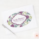 Purple & White Retro Style Roses Pattern Monogram Oval Sticker
