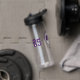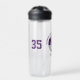 Purple white school club colours custom soccer water bottle