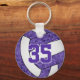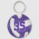 This purple and white volleyball keychain with custom school team name features a floral kaleidoscopic pattern blended with the volleyball's purple panels on the front and a simple white volleyball on the back - personalize with her name, team name and jersey number - by katz_d_zynes