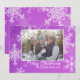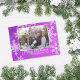 This charming, modern holiday card features a trendy purple background adorned with intricate, lace-like white snowflakes. The delicate snowflakes cover the surface, adding a festive and joyful feel to your holiday greetings. The card can be personalised with a custom photo, your family name, and a message in flowing, cursive script, giving it a unique, heartfelt touch. It’s a delightful and stylish way to send holiday cheer, perfect for sharing warm wishes with loved ones and creating a memorable, personalised holiday card.