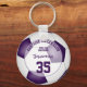 This easy-to-personalise soccer keyring features the realistic image of a soccer ball that has purple and white panels, upon which you can customise the athlete's name, jersey number, team & mascot name and year on the front and monogram or varsity letter on the back - by katz_d_zynes