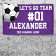 Cheer on your team with this Purple White Soccer Team Banner. Personalise with your athlete's number and name, and the name of the team. You can even change the message. Show off your team spirit this summer.
