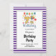 Purple/White Stripes Framed 7th Birthday Party Invitation