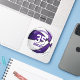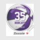 This team colours basketball sticker for girls or boys features the realistic image of a basketball that has purple and white panels - customise the player's name, jersey number, team name and mascot name - by katz_d_zynes