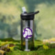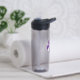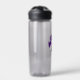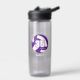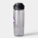 This team colours volleyball themed water bottle is suitable for girls or boys and features the realistic image of a volleyball that has purple and white panels, upon which you can personalise the athlete's name and jersey number - customise the school or club name encircling the top of the volleyball, team mascot name below - by katz_d_zynes