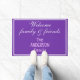 Purple White Welcome Family and Friends Name Doormat