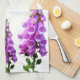 Purple white wildflowers floral pink purple script tea towel