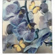 A beautiful watercolor painting of orchids flowers and butterflies in more neutral colour tones, like grey and dark purple, and also some brighter colours, like yellow and orange colores.